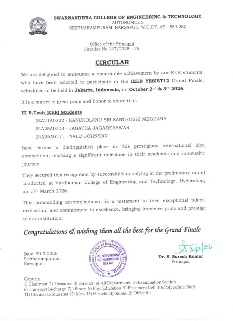 Intake: 180Electrical & Electronics Engineering