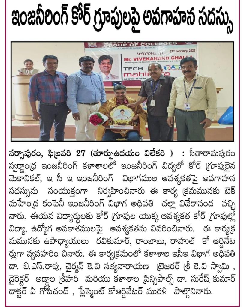 Title: సీతారామపురం స్వర్ణాంధ్ర ఇంజనీరింగ్ కళాశాలలో కోర్ గ్రూపు లపై అవగాహన సదస్సు