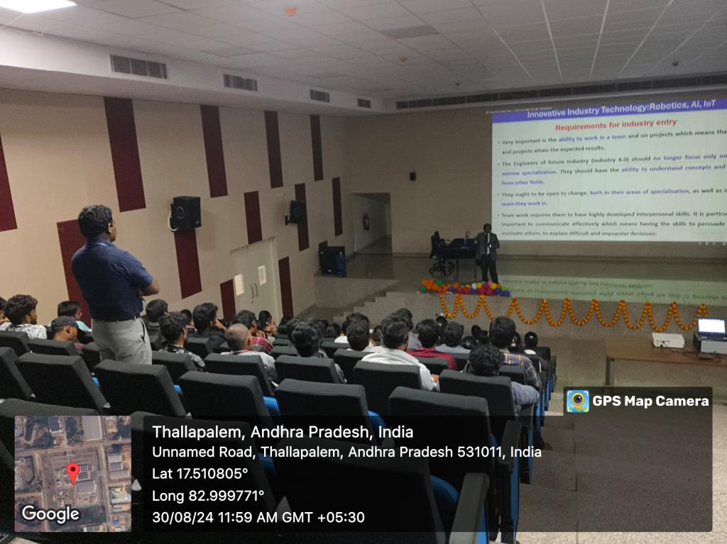 Title: స్వర్ణాంద్రా ఇంజనీరింగ్ కళాశాలలో అవగాహనా సదస్సు నరసాపురం మండలం, సీతారామపురంలో గల స్వర్ణాంద్రా ఇంజనీరింగ్ కళాశాలలో విధ్యార్డులకు ఆర్టిఫిషియల్ టెక్నాలజీ మీద అవగాహన సదస్సు నిర్వహించినారు. ఈ కార్యక్రమానికి ముఖ్య అతిధిగా జర్మణి సంస్థ క్రేవావి టెక్నాలజీ వ్యవస్థాపకులు డా.సచిన్ శివావి విచ్చేసినారు. ఈయన విద్యార్ధులకు కావలసిన అడ్వాన్స్ డ్ టెక్నాలజీ అయిన ఆర్టిఫిషియల్ ఇంటలిజెన్స్, అడ్వాన్స్ డ్ మొబైల్ టెక్నాలజీ ల గురించి వివరించినారు మరియు ప్రస్తుత పోటీ ప్రపంచములో ఉద్యోగ అవకాశములు పొందుటకు కావలసిన నైపుణ్యము మరియు ఆధునిక టెక్నాలజీ గురించి వివరించినారు. ఈ కార్యక్రమమునకు ఇసిఇ విభాగ అధిపతి డా.బి.ఎస్.రావు, ఆద్యాపకులు రవి కుమార్, జి.క్రిస్టిన, జె.ఇ.ఎన్.అభిలాష్ నిర్వహించినారు. ఈ కార్యక్రమములో కళాశాల ఛైర్మన్ కె.వి.సత్యనారాయణ, ట్రెజరర్ కె.వి.స్వామి, డైరెక్టర్స్ అడ్డాల శ్రీహరి, పాలకవర్గ సభ్యులు పులపర్తి వెంకటేశ్వరరావు, ప్రిన్సిపల్ డా.ఎస్.సురేష్ కుమార్, వైస్ ప్రిన్సిపల్ డా.ఏ.గోపి చంద్, ఏఐఎమ్ ఎల్ విభాగ అధిపతి బొమ్మ రామకృష్ణ మరియు వివిధ విభాగముల ఆద్యాపకులు, విద్యార్ధినీ విద్యార్ధులు పాల్గొన్నారు